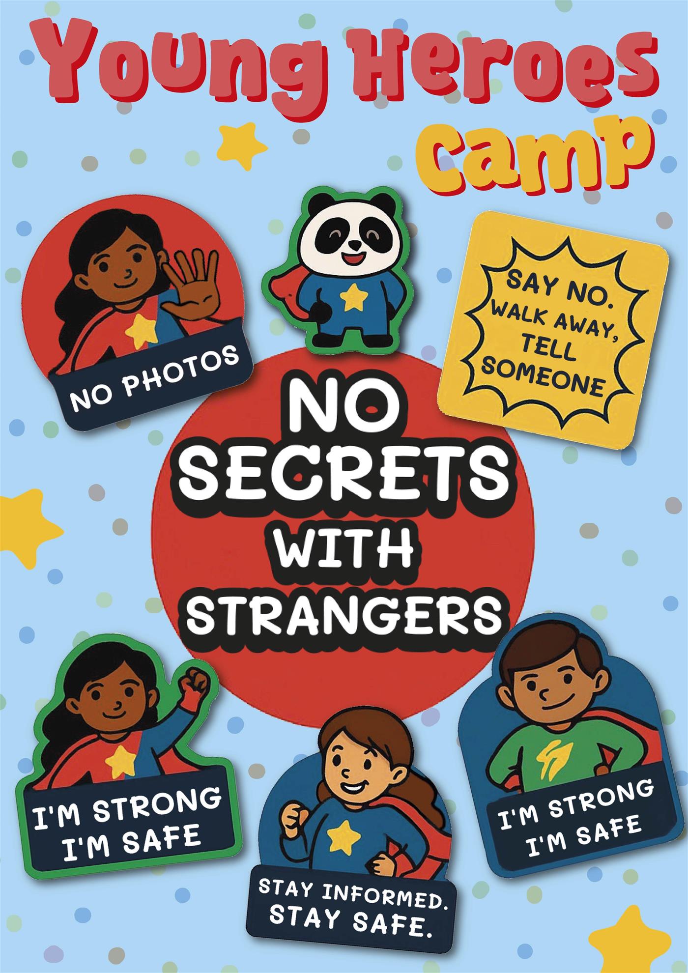 Children will receive the Child Hero stickers and a coloring book featuring the different safety messages. We may include wristbands they can make with short safety phrases. The children will also enjoy some ice cream as a small parting gift.